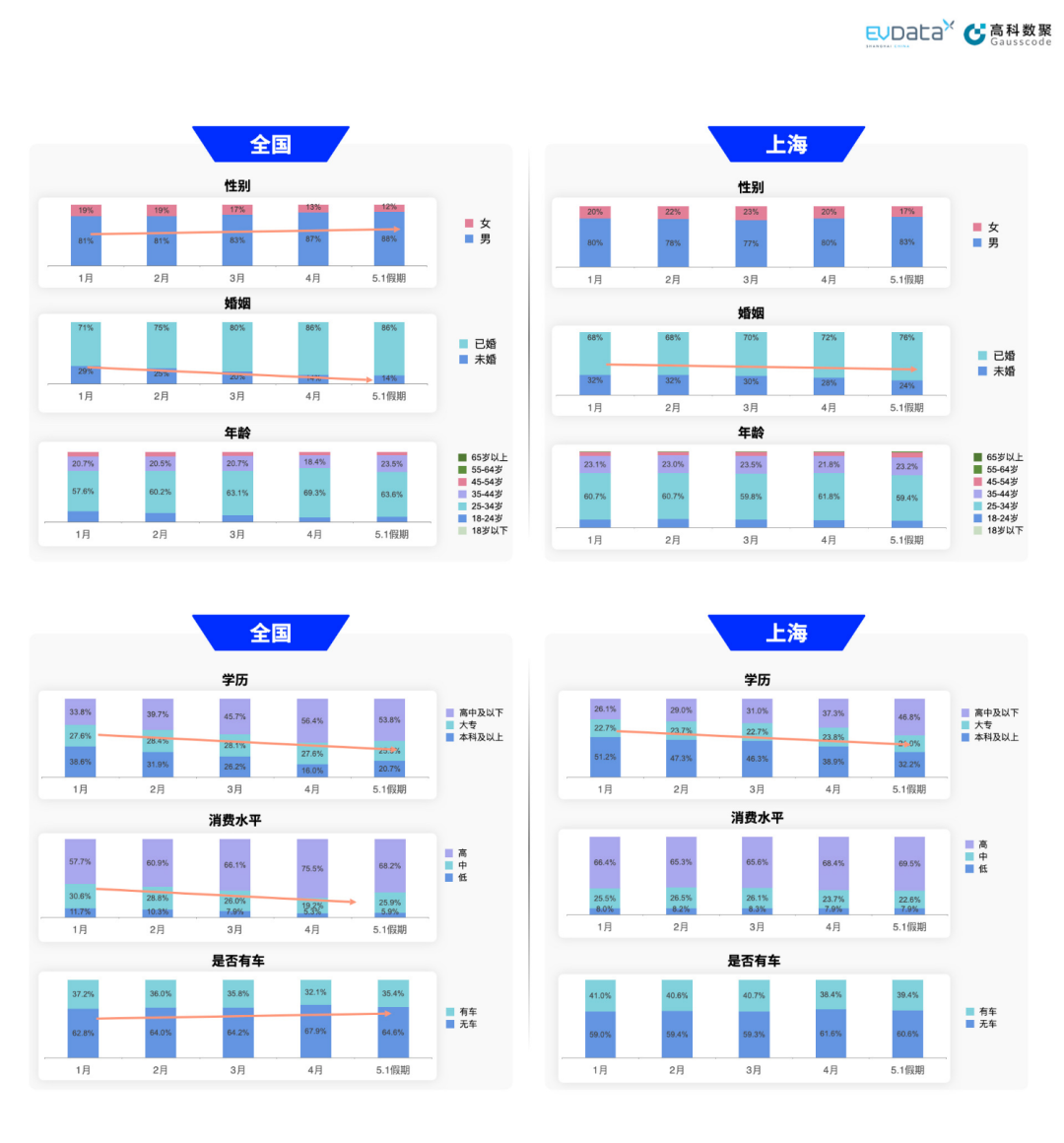 值得注意的是,新能源汽车市场竞争激烈,这也为本土车企带来了独特的竞争机遇。那么从大数据角度看,全国和上海新能源汽车关注人群有哪些变化趋势?上海新能源汽车出行特征如何?上海新能源汽车数据中心联合公海gh555000aa,一同透过数据带你看今年上海新能源汽车“五一”出行的新趋势。